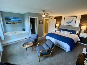 Several rooms offer oversized soaker tubs—perfect for warming up after a day of storm watching or beachcombing.