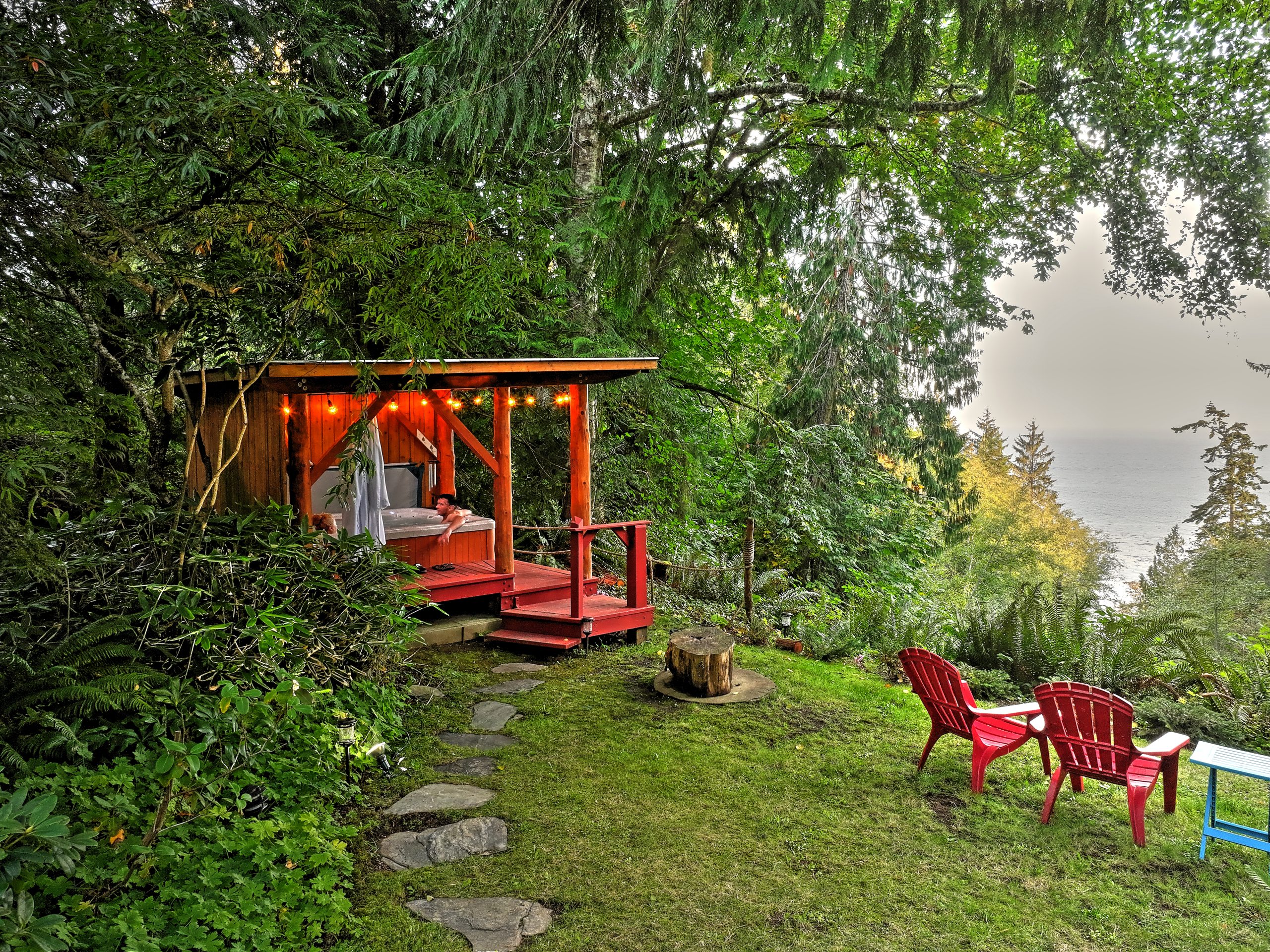 Set on an oceanfront property surrounded by five acres of pristine, wild coastal forest, Ocean Wilderness Inn offers a rare level of privacy and immersion in Vancouver Island’s natural beauty. A private trail winds along a freshwater creek and leads directly to Orveas Bay, providing a secluded spot for photos, quiet moments, or a post-ceremony walk along the shoreline.